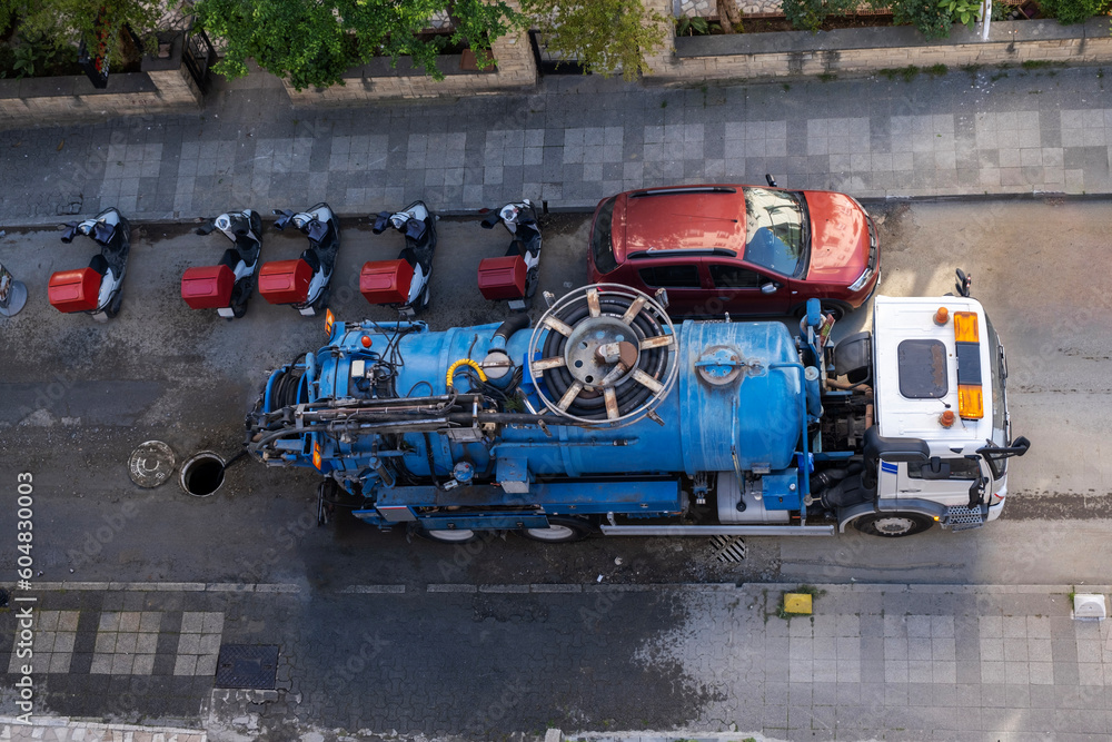 Po wprowadzeniu przewodu do rur pojazd zaczyna pompować wodę.